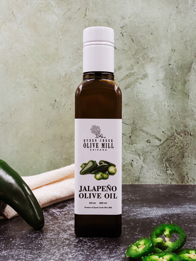 In the words of Este Rea, “this oil has become one of the most versatile staples in my pantry!” Our Jalapeño olive oil starts with a fiery blend of local jalapeño peppers which are then crushed together with our olives to yield a unique, piquant oil with a perfect balance of heat and flavor.