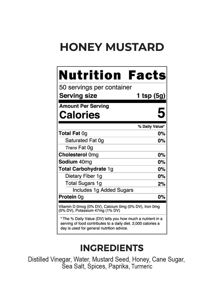 Our Honey Mustard blends golden honey with tangy mustard seed for a smooth, sweet-heat bite that's bold, balanced, and endlessly craveable.