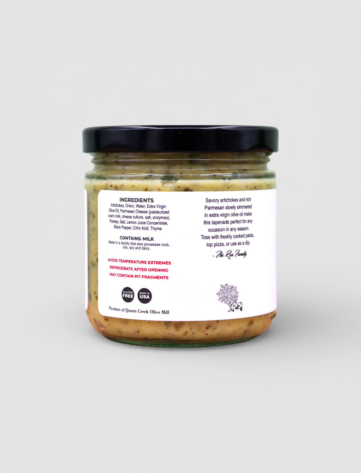 We take Italy’s finest Parmesan cheese and Artichoke and random-grate them before blending them with Queen Creek Olive Mill extra virgin olive oil and just the right amount of crushed peppercorn and spices to create our show-stopping Artichoke Parmesan tapenade.