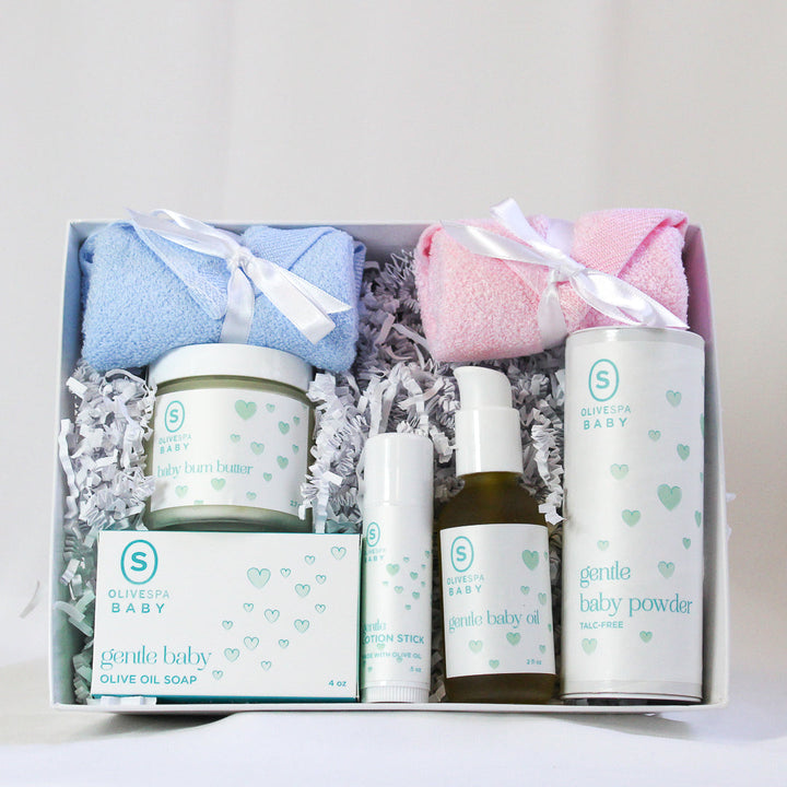 Look no further, here are all of your baby skincare staples, in one awesome gift set! Our Olivespa Baby Signature Gift Set includes: