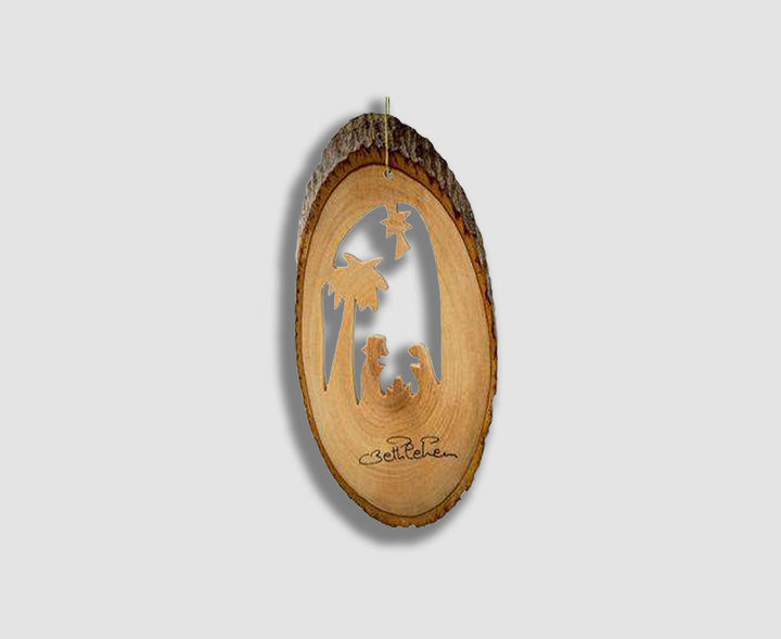 The olive wood ornaments are crafted in Bethlehem by the Giacaman Family. Ibrahim Giacaman, a master woodcarver, shapes the olive wood into one-of-a-kind Nativity figurines and Christmas tree ornaments.