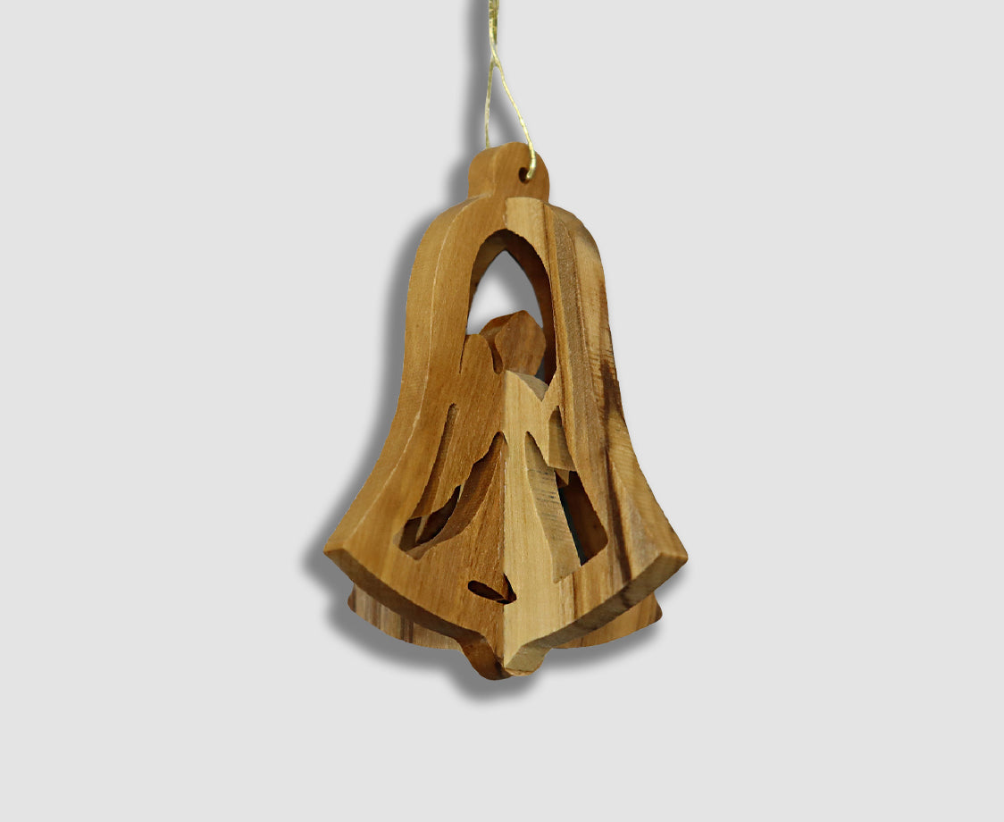 The olive wood ornaments are crafted in Bethlehem by the Giacaman Family. Ibrahim Giacaman, a master woodcarver, shapes the olive wood into one-of-a-kind Nativity figurines and Christmas tree ornaments.