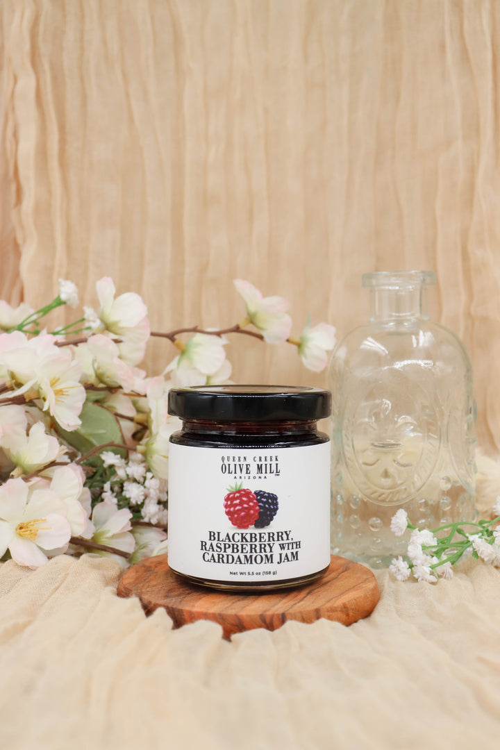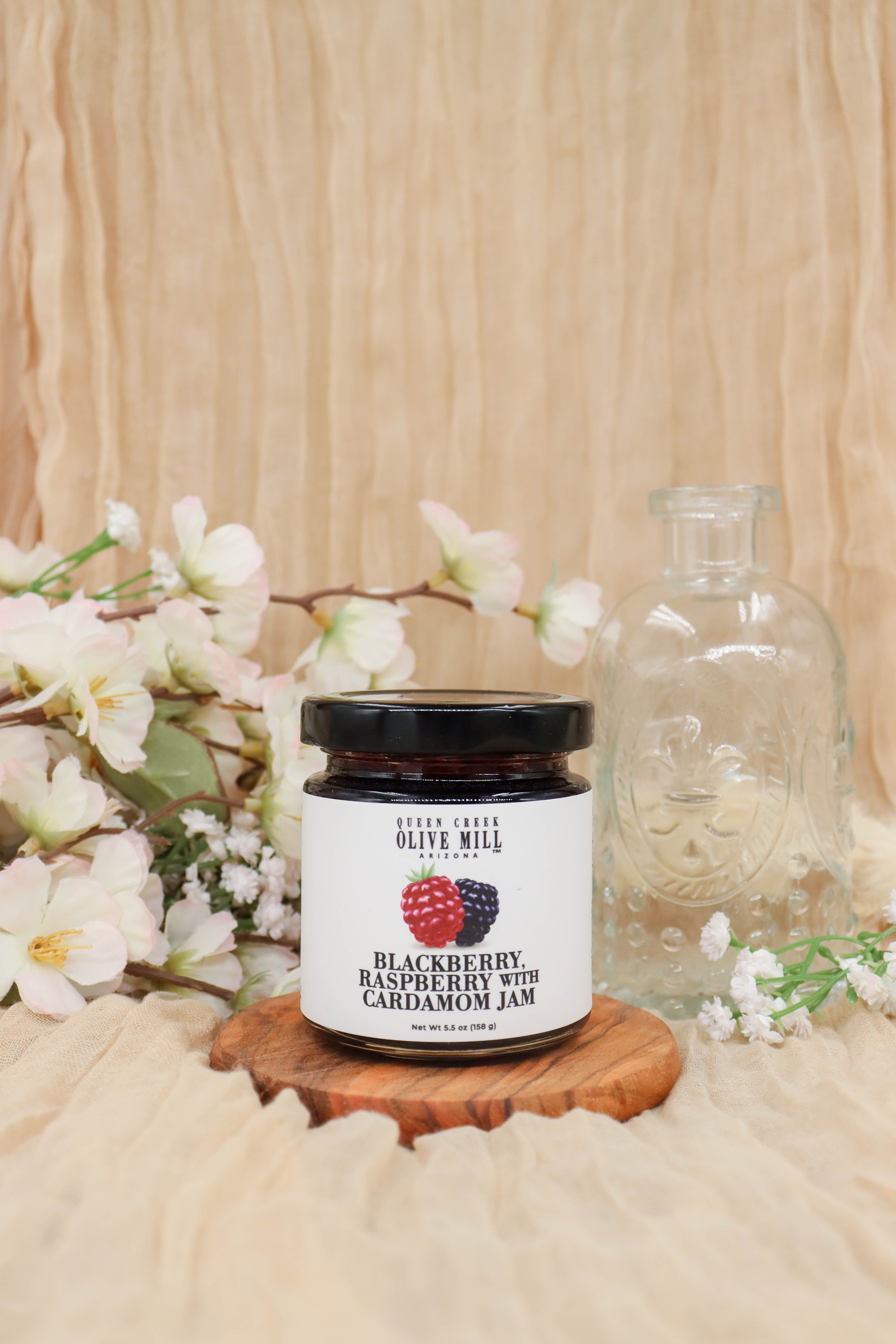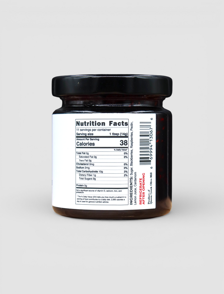Juicy blackberries and raspberries come together with warm cardamom for a rich, fruit forward jam with a subtle hint of spice and unexpected depth.