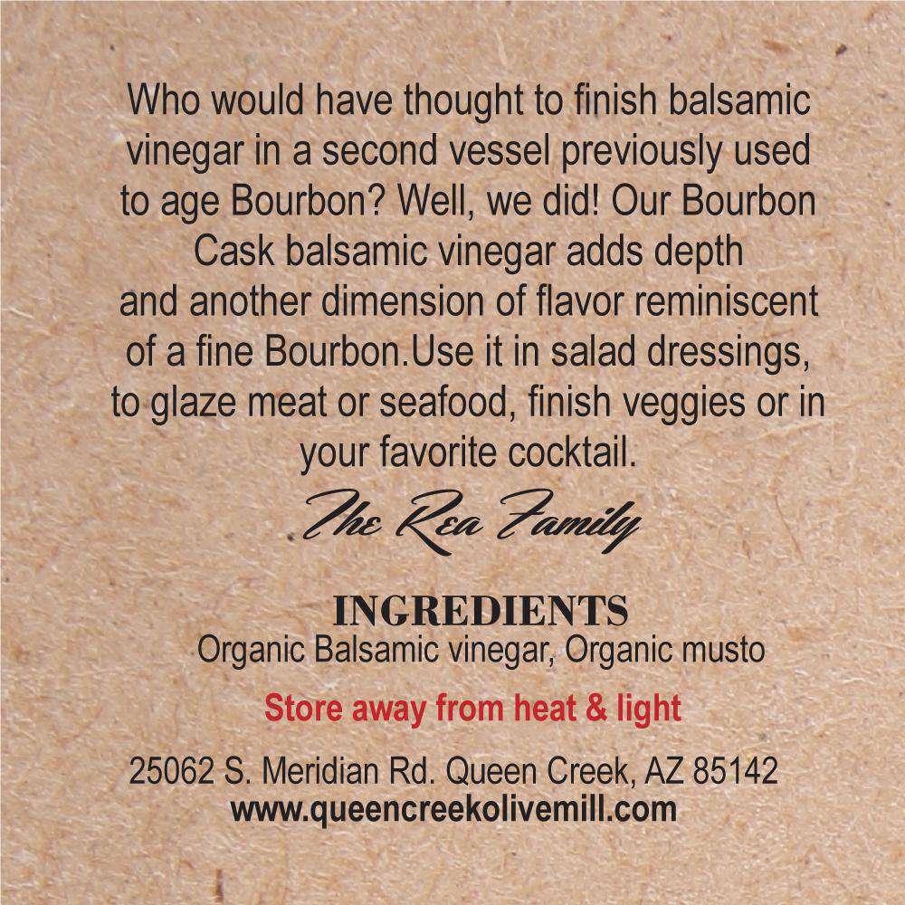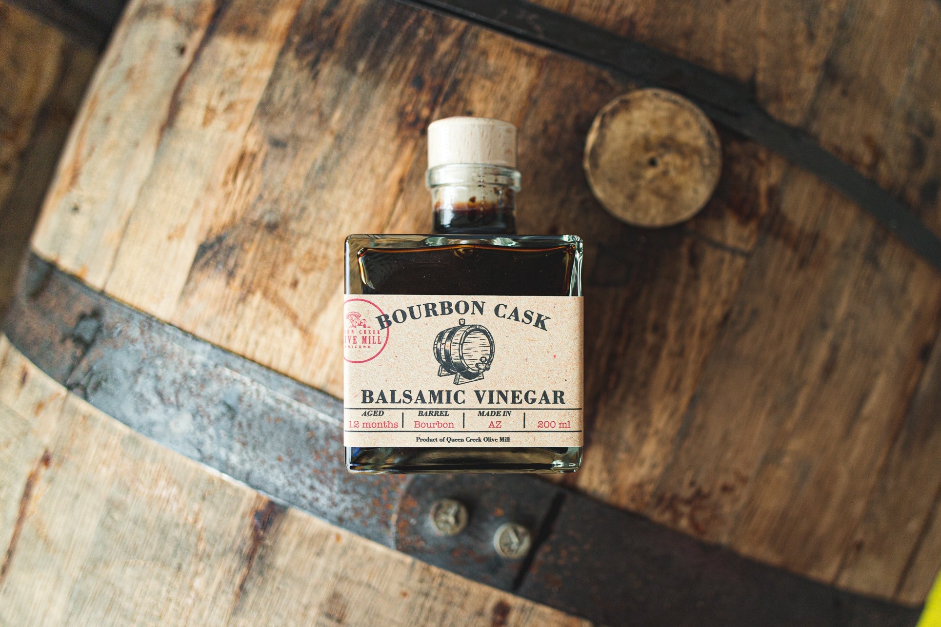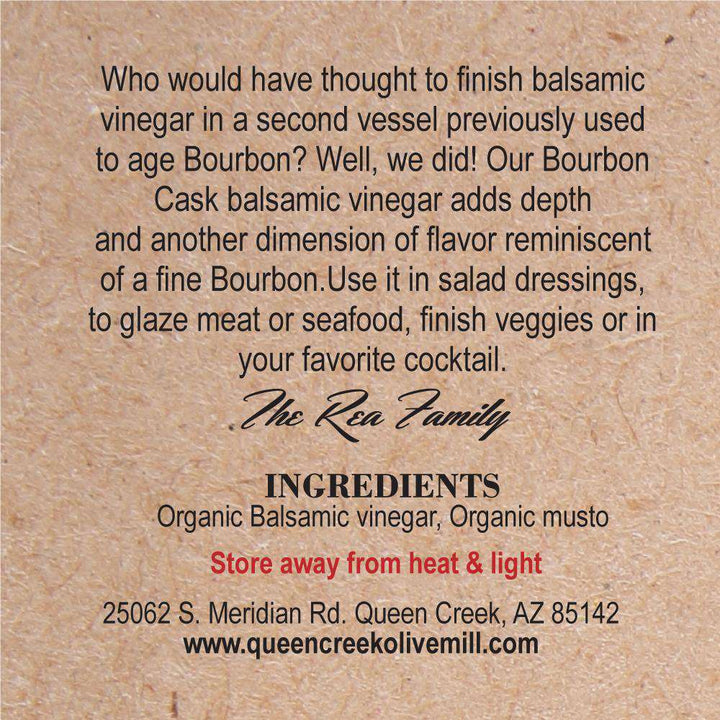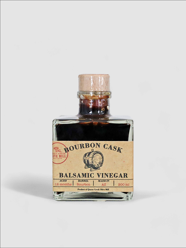 Who would have thought to finish balsamic vinegar in a second vessel previously used to age Bourbon? Well, we did! The finest balsamic vinegar is aged 12 months and finished in a beautiful Bourbon Cask, adding depth and a whole new dimension of flavor. Some find it reminiscent of a fine Bourbon.