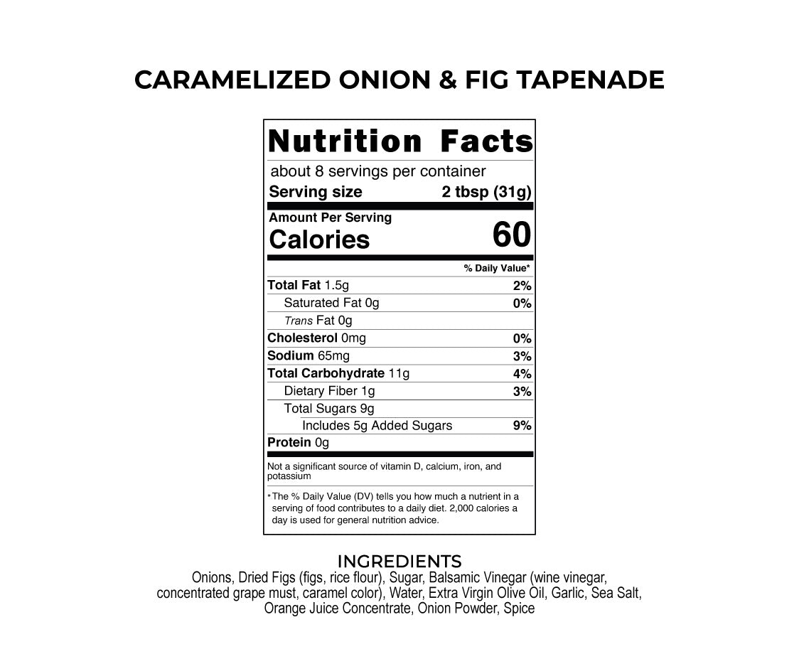 Our dangerously addictive Caramelized Red Onion & Fig Tapenade packs a unique burst of flavor. We simmer the freshest sweet red onions and figs in Italian balsamic vinegar with a touch of port to create this delicious tapenade.