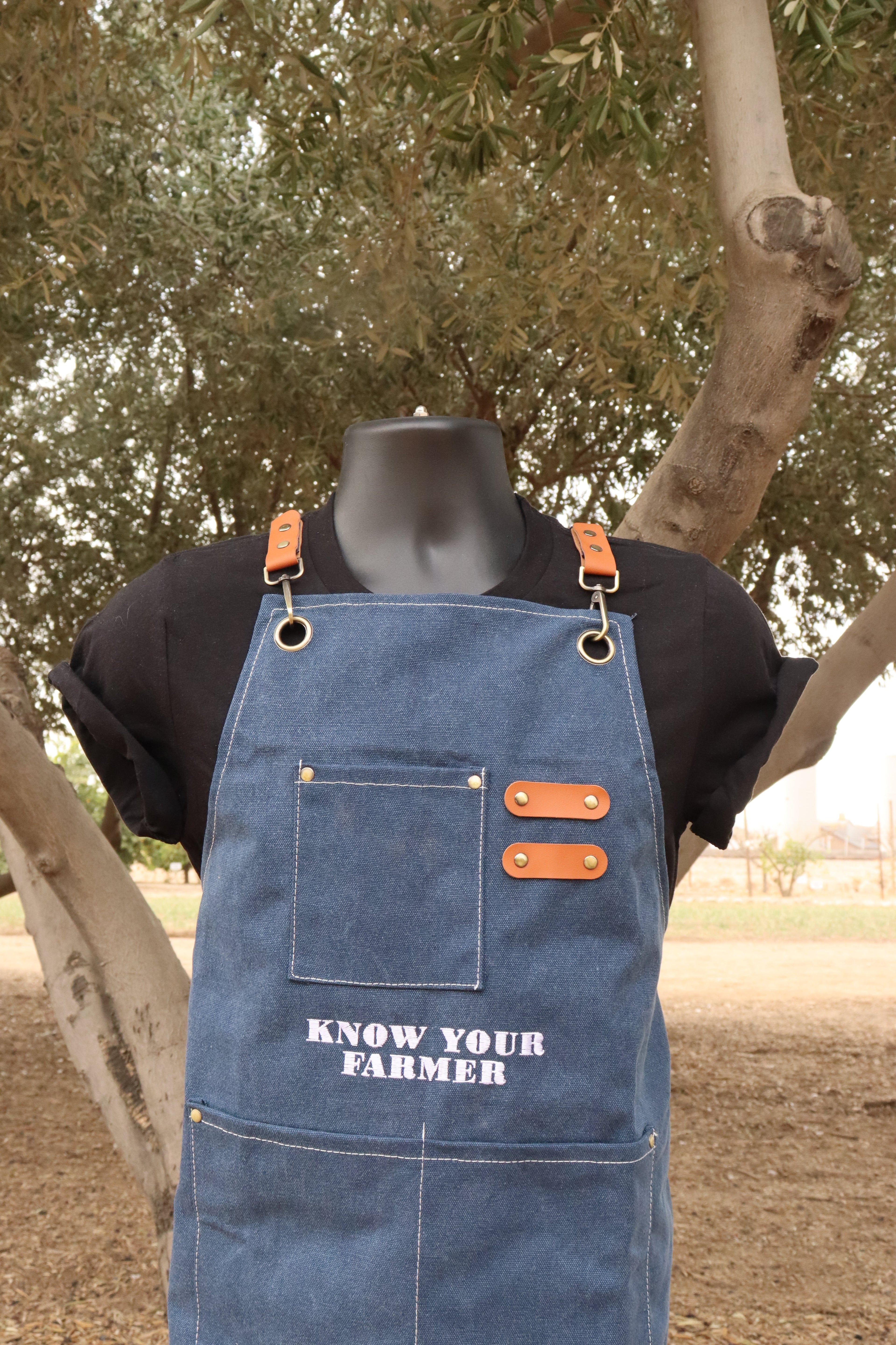 Navy Blue Know Your Farmer Embroidered Apron