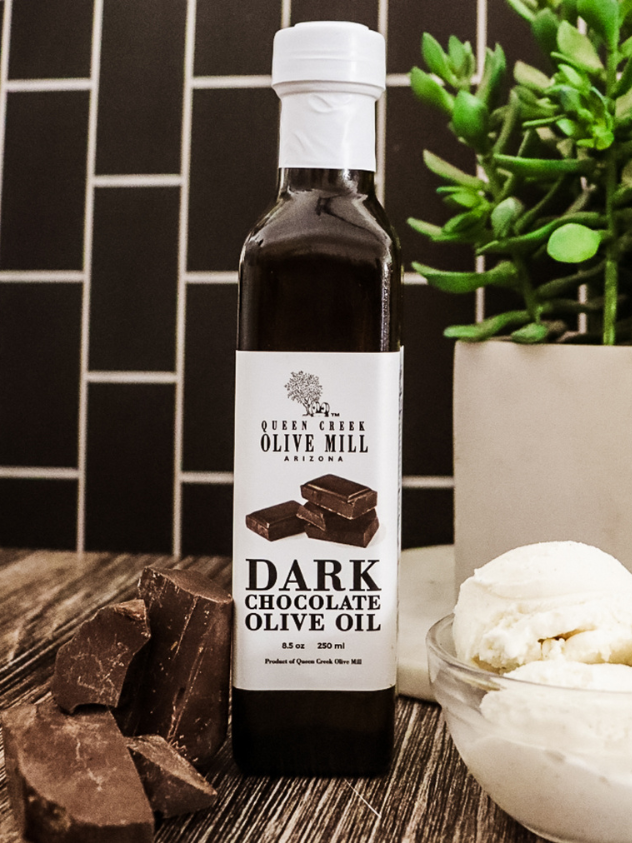 Dark chocolate cocoa bean oil and extra virgin olive oil are combined in perfect union by our Olive Oil Sommelier to create an excellent complement to both sweet and savory dishes. Our Dark Chocolate olive oil has a creamy mouthfeel with nutty, malty notes of cocoa and a sweet aroma. We’ve found the perfect balance of the astringency and bitterness naturally present in dark chocolate and infused it into our olive oil.