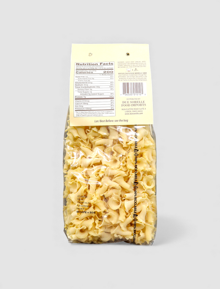 Bring the flavors of Italy home with Due Sorelle Gigli Pasta, an artisanal, flower-shaped pasta made from durum wheat semolina and crafted in Italy. Known for its elegant ruffled edges, gigli (also called campanelle) captures sauces in every fold, making it a favorite for hearty meals and elevated weeknight cooking.