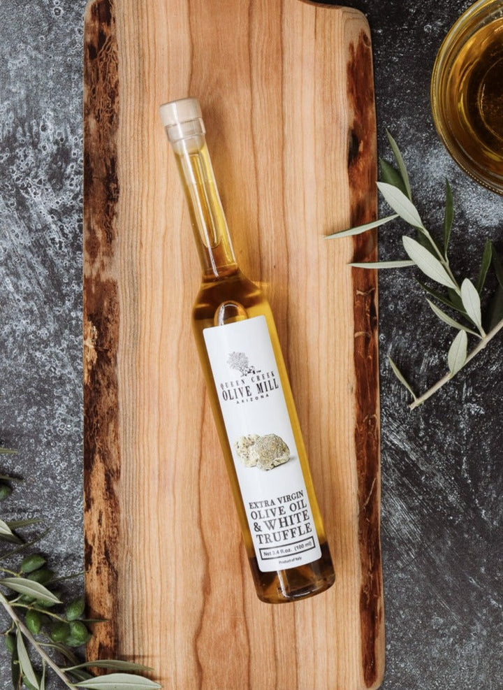 Earthy white truffles are infused in the finest extra virgin olive oil to create this incredible drizzling oil. Drizzle on soups, stews, grilled vegetables, pasta, risotto, and grilled meats.