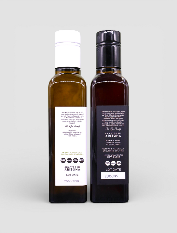The Flavors of Arizona Duo captures the bright, distinctive tastes inspired by the Sonoran Desert in one beautifully packaged gift set. This pairing brings together zesty lime olive oil and sweet prickly pear balsamic reduction—two standout flavors that complement each other effortlessly.