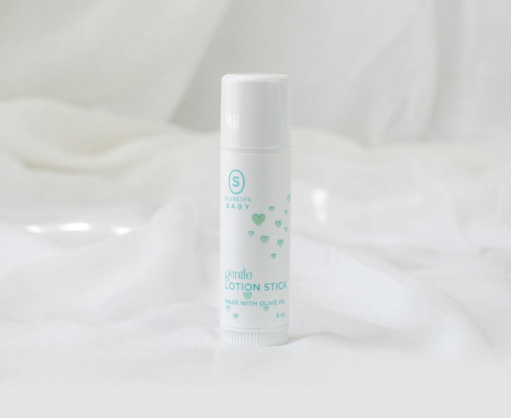 Our Gentle Lotion Stick provides natural moisture and protection for the baby's dry patches.