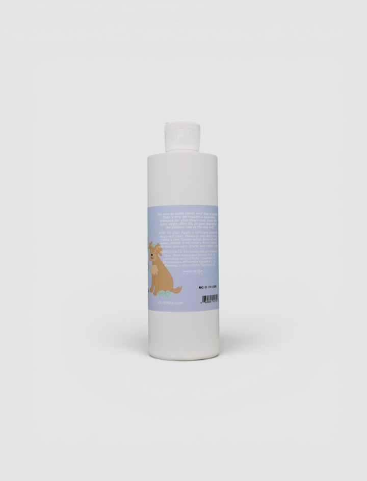 A nourishing, extra virgin olive oil dog shampoo with calming lavender that leaves your dog's coat clean, shiny, and soft from nose to tail.