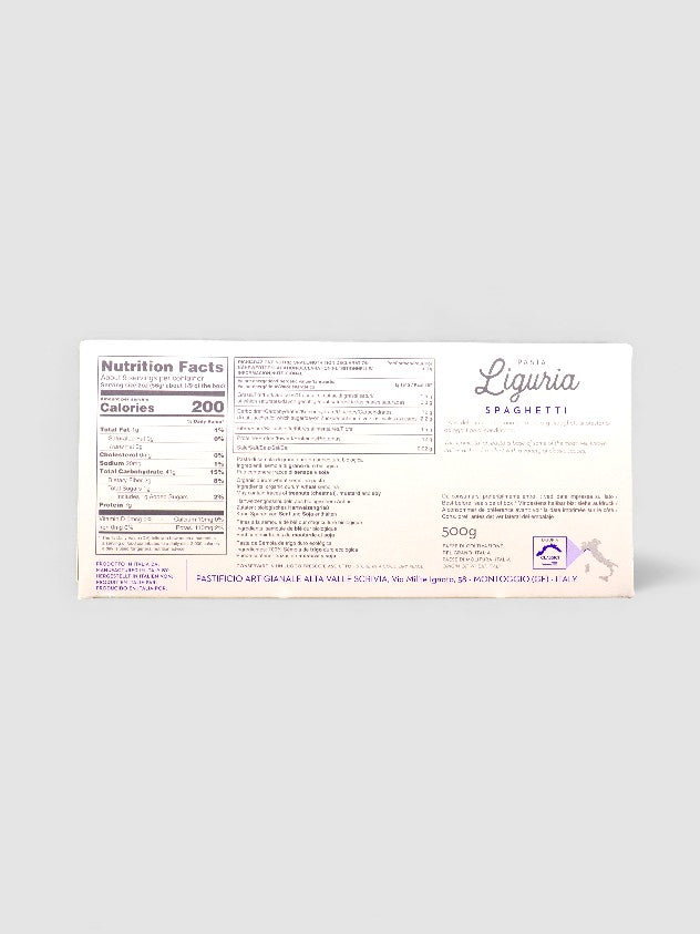 Organic Ligurian spaghetti made with locally sourced Italian ingredients and pure spring water.