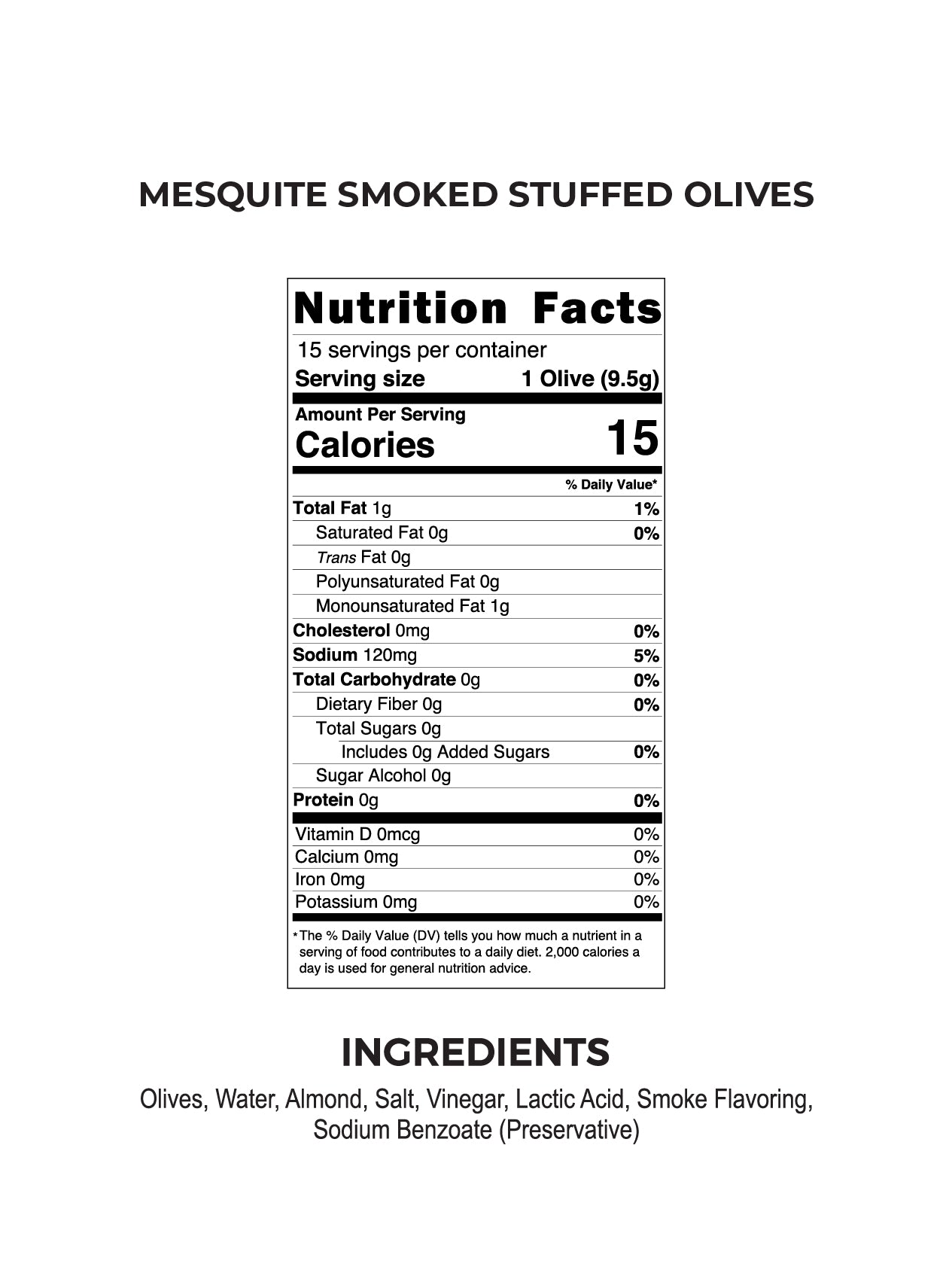 MESQUITE SMOKED ALMOND STUFFED OLIVES