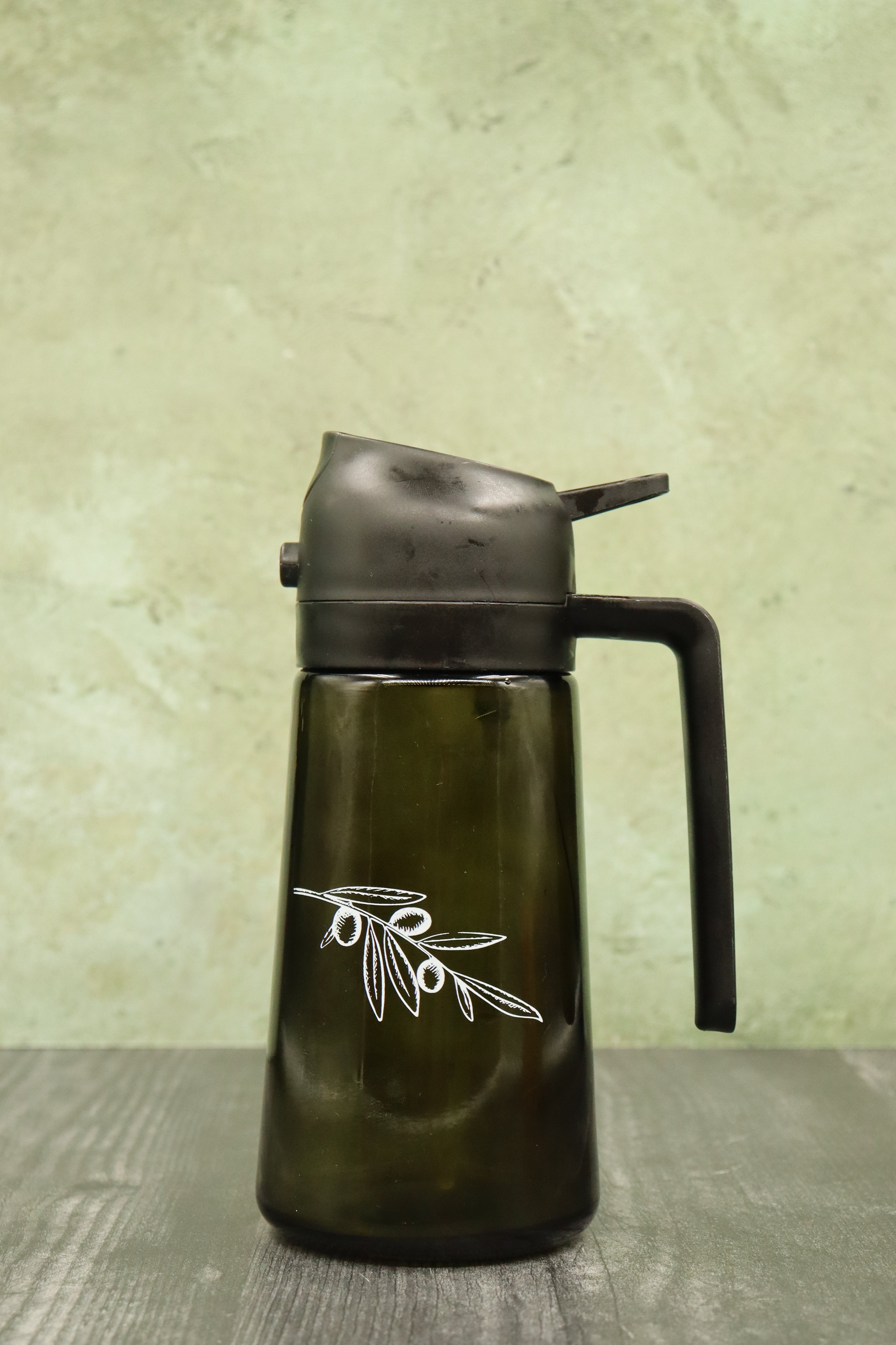 Olive Branch EVOO Sprayer & Pourer with Black Lid & Green Glass Bottom - 470ml