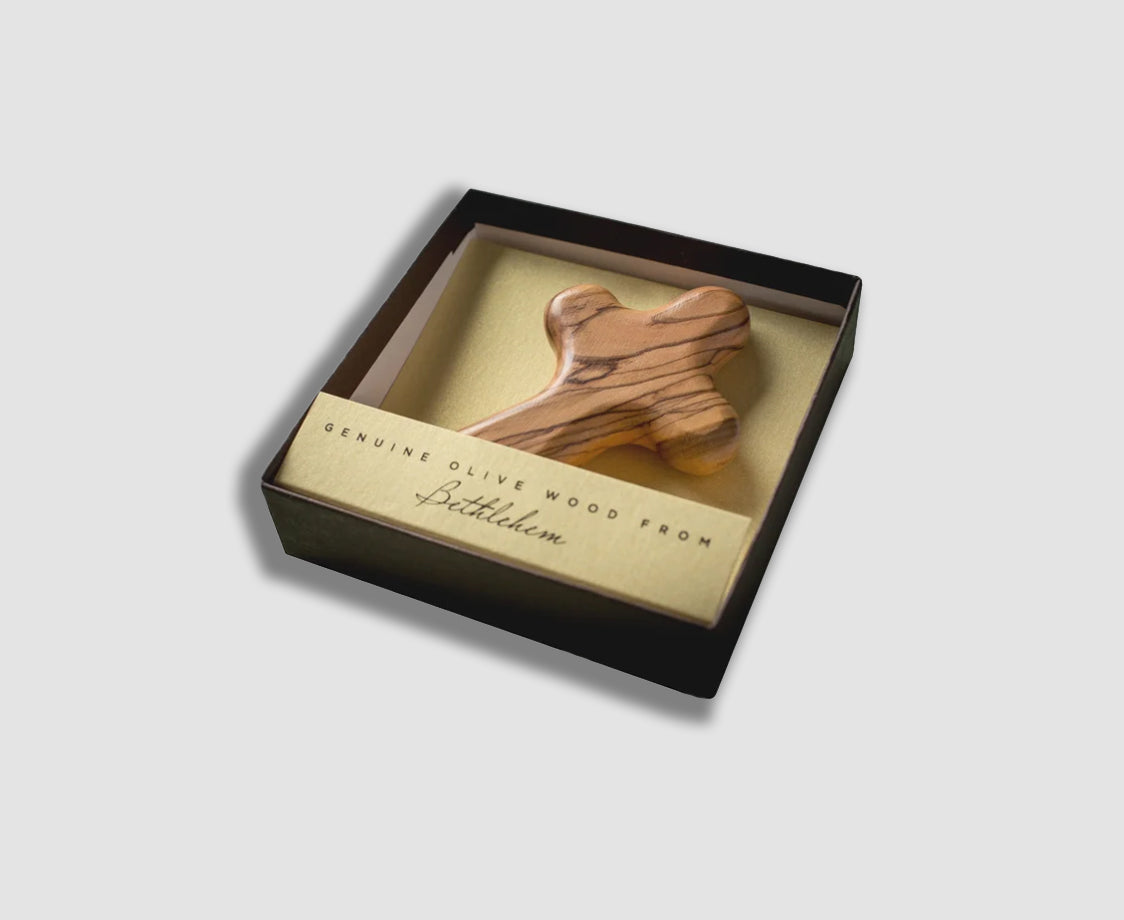 The olive wood ornaments are crafted in Bethlehem by the Giacaman Family. Ibrahim Giacaman, a master woodcarver, shapes the olive wood into one-of-a-kind Nativity figurines and Christmas tree ornaments.