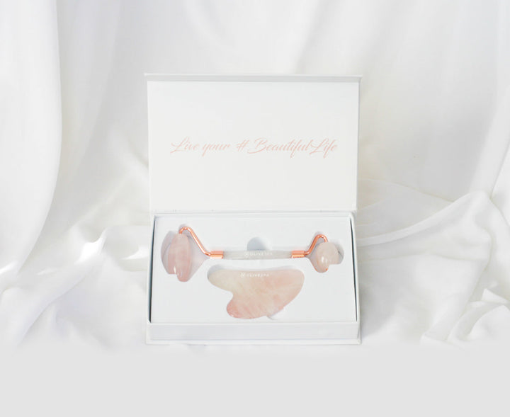 ROSE QUARTZ ROLLER + GUA SHA BOXED SET