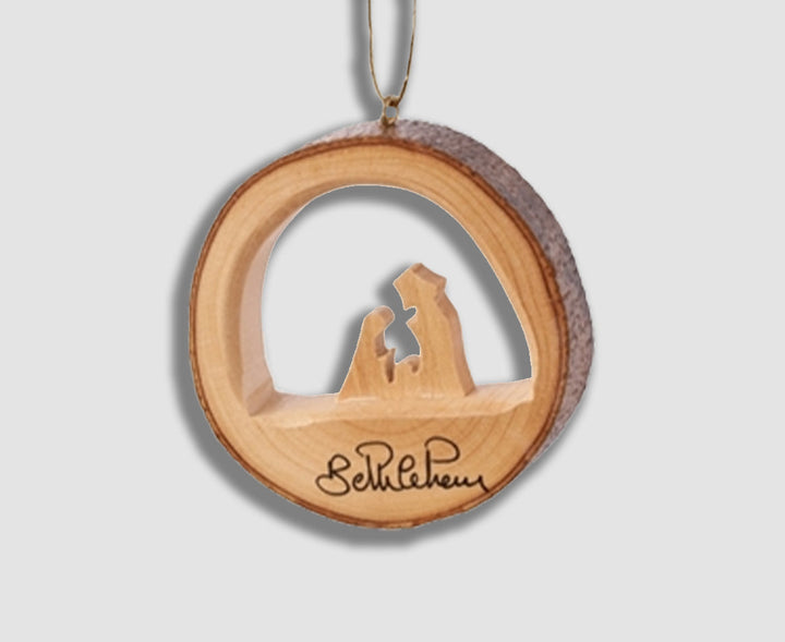 The olive wood ornaments are crafted in Bethlehem by the Giacaman Family. Ibrahim Giacaman, a master woodcarver, shapes the olive wood into one-of-a-kind Nativity figurines and Christmas tree ornaments.