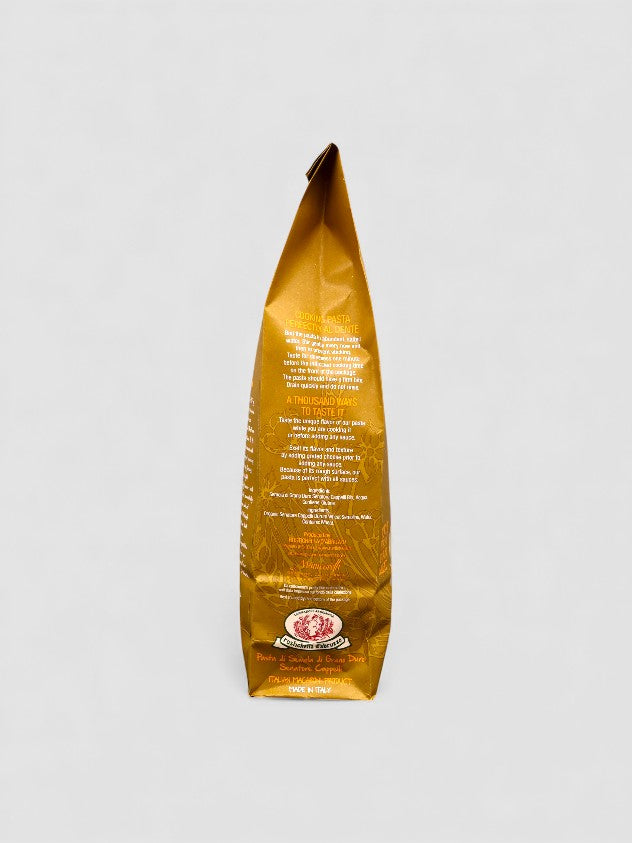 Organic mezzemaniche made from Senatore Cappelli durum wheat, offering a hearty bite and excellent sauce absorption.