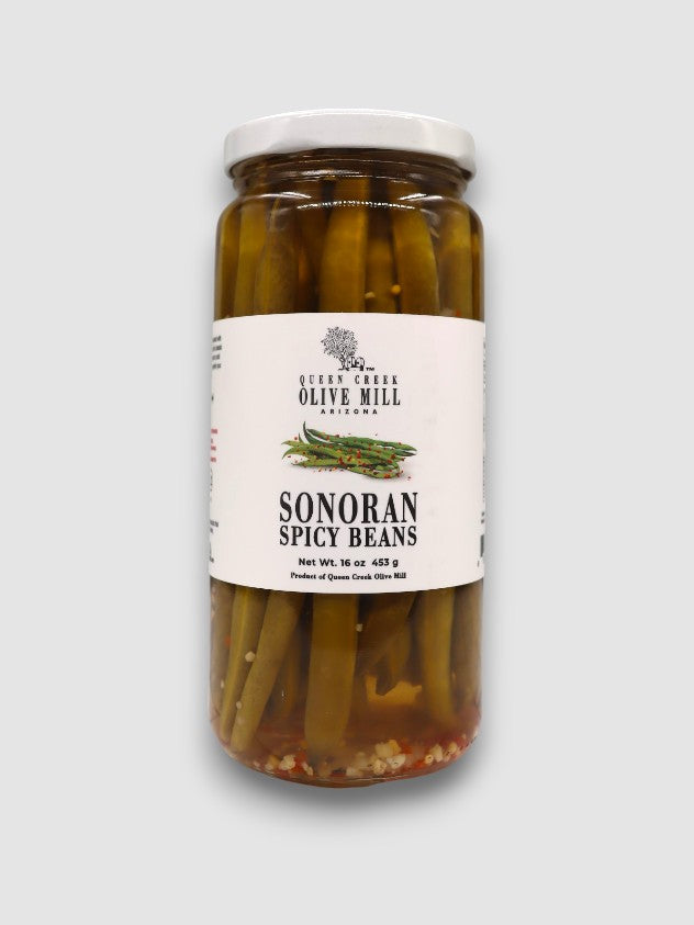 Fresh green beans are marinated in a spicy, pickle-y brine, which helps to maintain their crispness and beautiful *crunch*. Our Sonoran Spicy Beans are intensely flavorful, and are sure to become the star of your next charcuterie board or cocktail--Bloodys and Caesars alike!