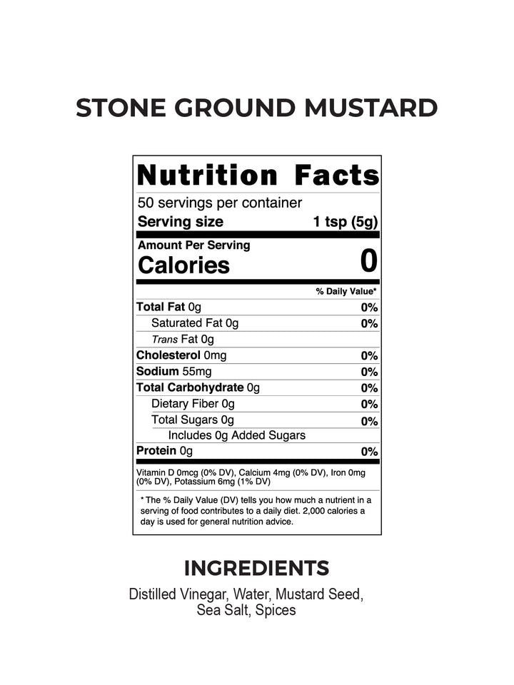 Our Stone Ground Mustard is rustic and bold, with crushed mustard seeds, delivering a hearty texture and sharp, zesty flavor in every bite.
