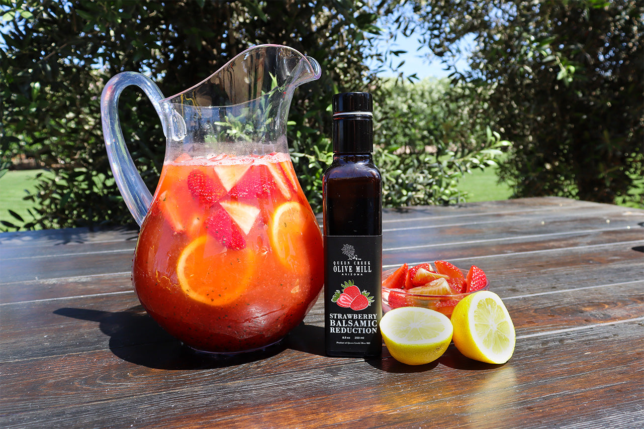 Our Strawberry Balsamic Reduction has a rich and complex flavor derived from fresh strawberry juice and aged balsamic vinegar. This blend yields a sweet and smooth balsamic reduction, perfect in almost any dish which uses traditional balsamic vinegar.