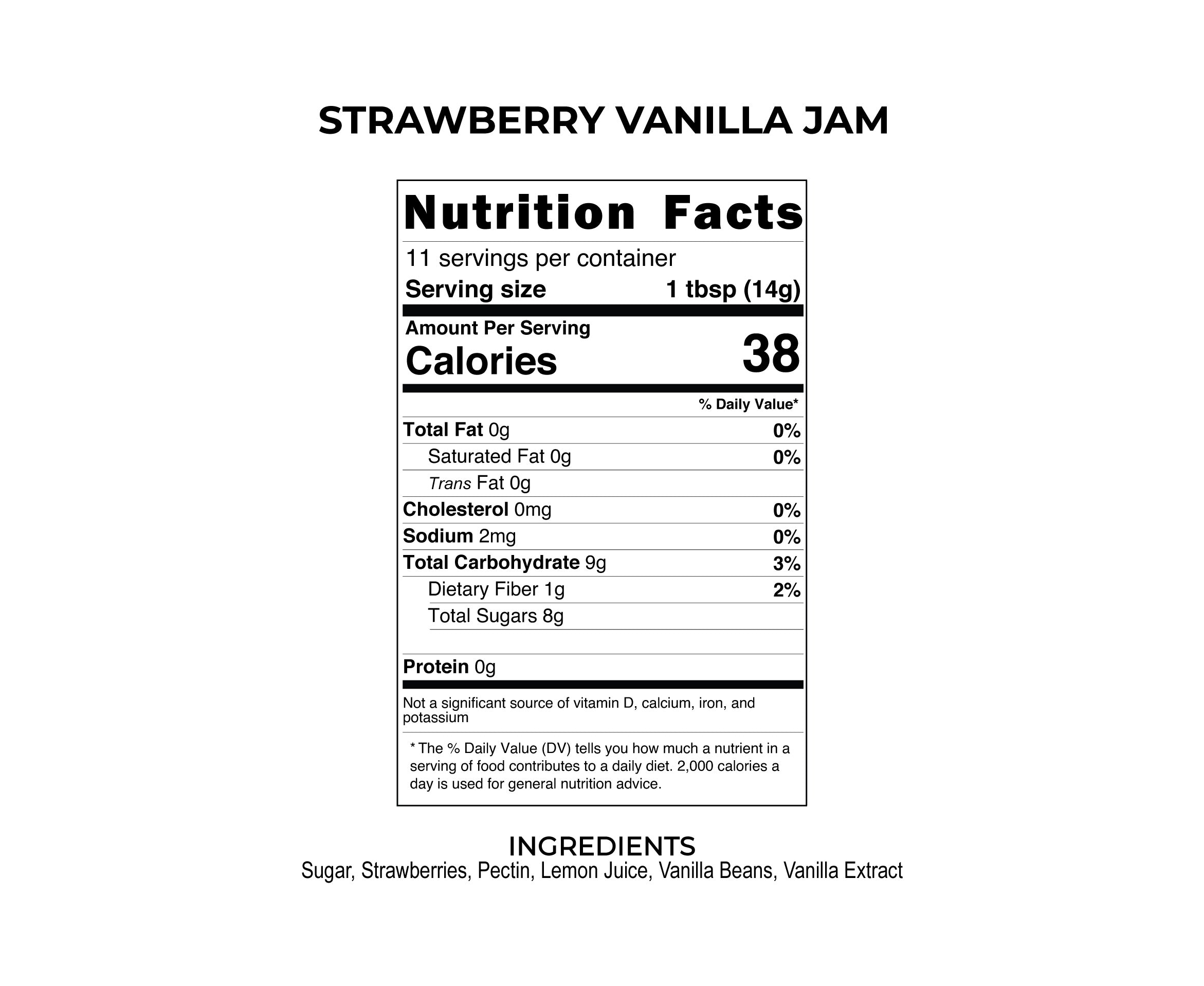 Sugar, Strawberries, Pectin, Lemon Juice, Vanilla Beans, Vanilla Extract