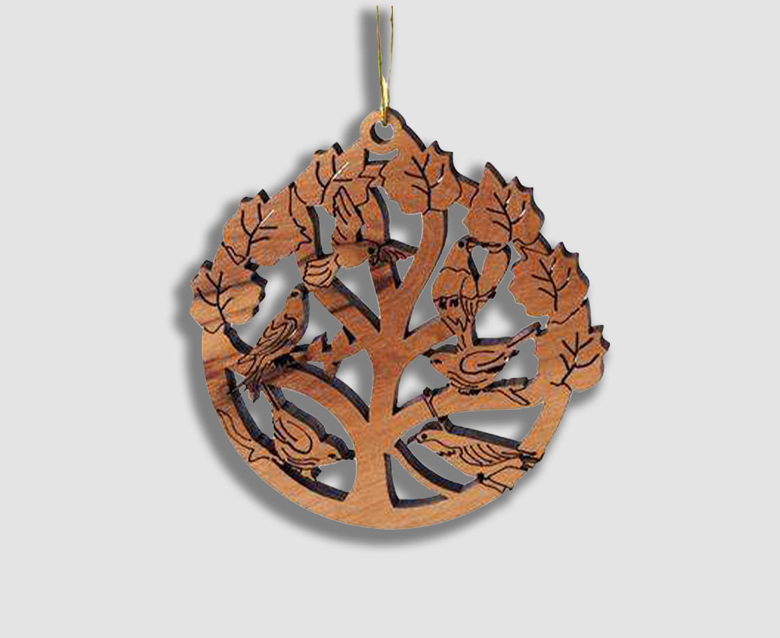 The olive wood ornaments are crafted in Bethlehem by the Giacaman Family. Ibrahim Giacaman, a master woodcarver, shapes the olive wood into one-of-a-kind Nativity figurines and Christmas tree ornaments.