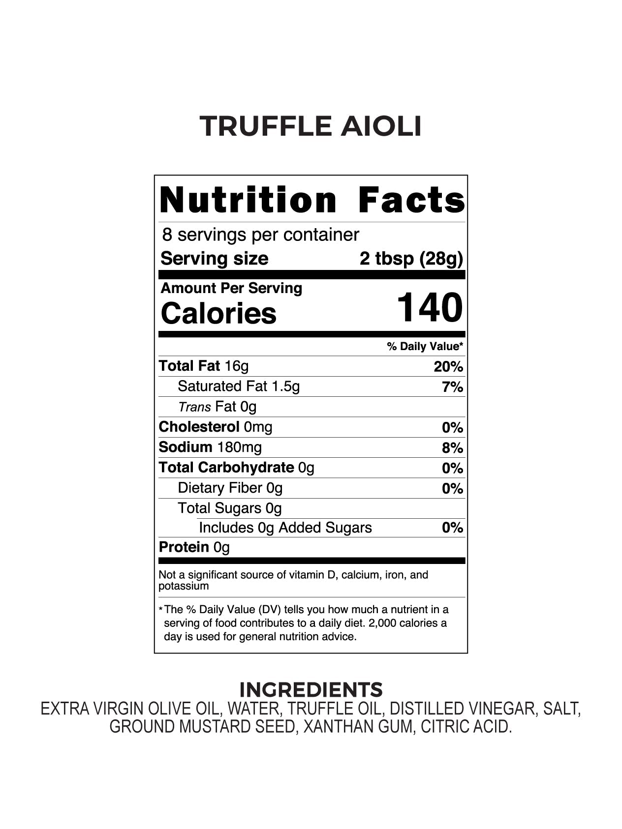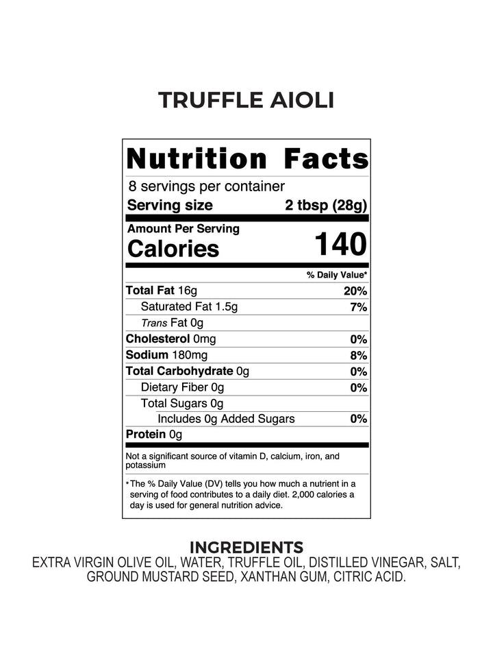 Rich, earthy, and decadently smooth. Our Truffle Aioli combines the luxurious aroma of truffle with the creamy richness of aioli. This gourmet aioli instantly elevates your meals to a whole new level of indulgence.