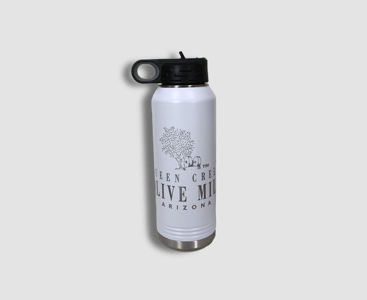 32oz Double Wall Insulated Stainless Steel QCOM Logo Water Bottle with Flip Top Lid & Straw